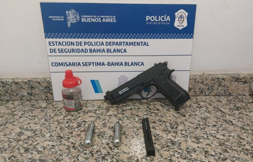 Luego de dos días, con la intervención de la UFI N° 7 de Bahía Blanca, policías allanaron el departamento del propietario del Peugeot 307 (había quedado registrada su matrícula) y en el registro secuestraron una pistola de aire comprimido de 4,5 de calibre.
