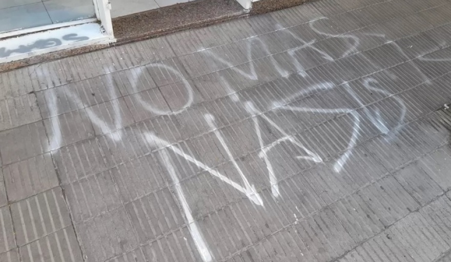 La sede partidaria ubicada en pleno centro de la ciudad amaneció con pintas que dicen “neonasis (sic)”, “No más nasismo (sic)” y “Fachos” en la vereda y también en los vidrios de la entrada.