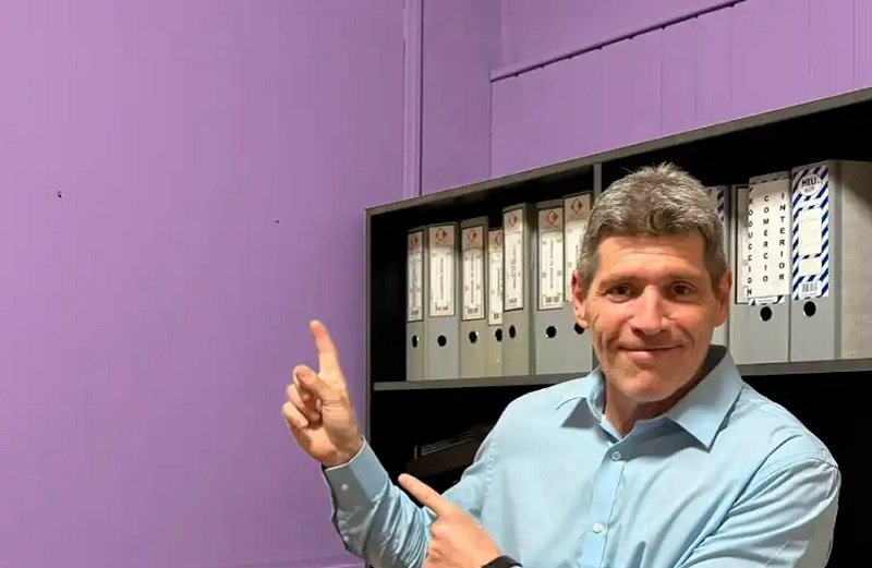 “Las autoridades de la Cámara me informaron que mi despacho iba a ser entregado a la flamante diputada Mayra Mendoza y me pidieron que lo deje en buenas condiciones”, señaló Castello. “Aprovechamos el finde largo para darle una manito de pintura. Quedó bien, ¿no?”, preguntó con ironía el diputado libertario, señalando las paredes pintadas de morado.