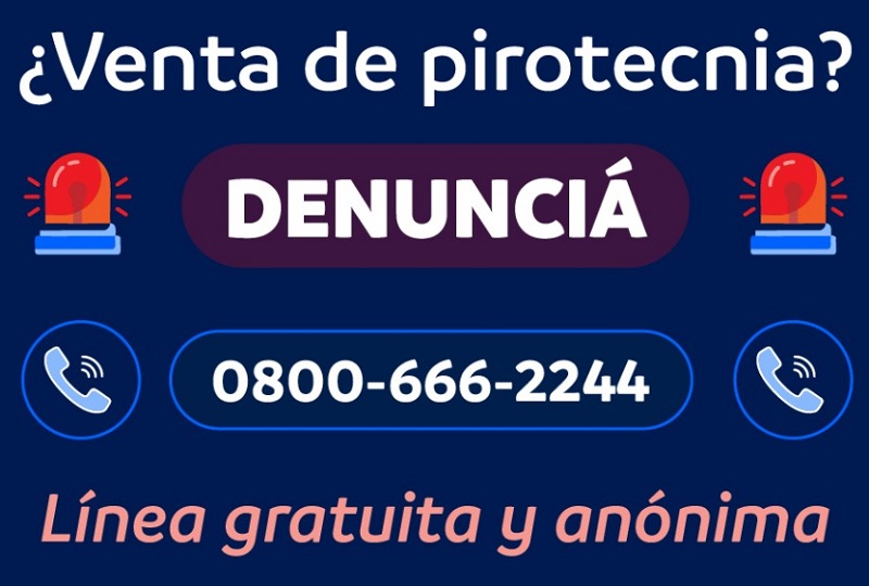 Es por esto que además, el Municipio habilitó la línea gratuita y anónima 0-800-666-2244 para que los vecinos puedan efectuar denuncias sobre venta de pirotecnia.