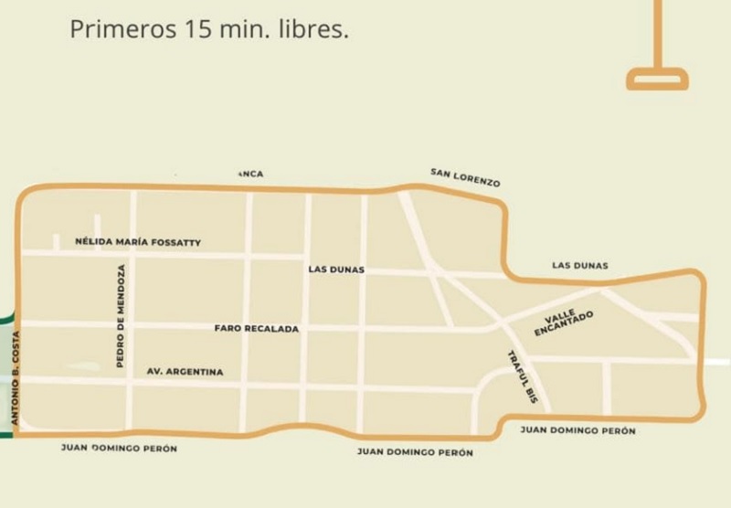 La zona 2 comprende el sector demarcado por Avenida Alfonsín, Faro Recalada, Antonio Costa y Costanera, está activo entre las 9 y las 21.