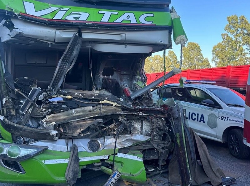 El hecho se produjo minutos después de las 6, en el kilómetro 732 de la Ruta Nacional 22, cuando un micro de la empresa Vía Tac impactó al acoplado de un Scania 420 perteneciente a la firma Cruz del Sur, conducido por Luis Colicheo (41), quien resultó ileso.