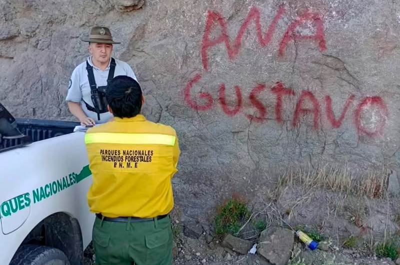 Luego de completar el acto, el aerosol utilizado para la pintada fue abandonado en el lugar, un dato que fue constatado por los guardaparques que acudieron poco después.