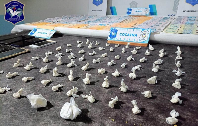 Durante los allanamientos, los investigadores secuestraron una cantidad importante de clorhidrato de cocaína y marihuana fraccionada, además de diez teléfonos celulares y dinero en efectivo, elementos que fueron puestos a disposición de la justicia como pruebas clave para el avance de la causa.
