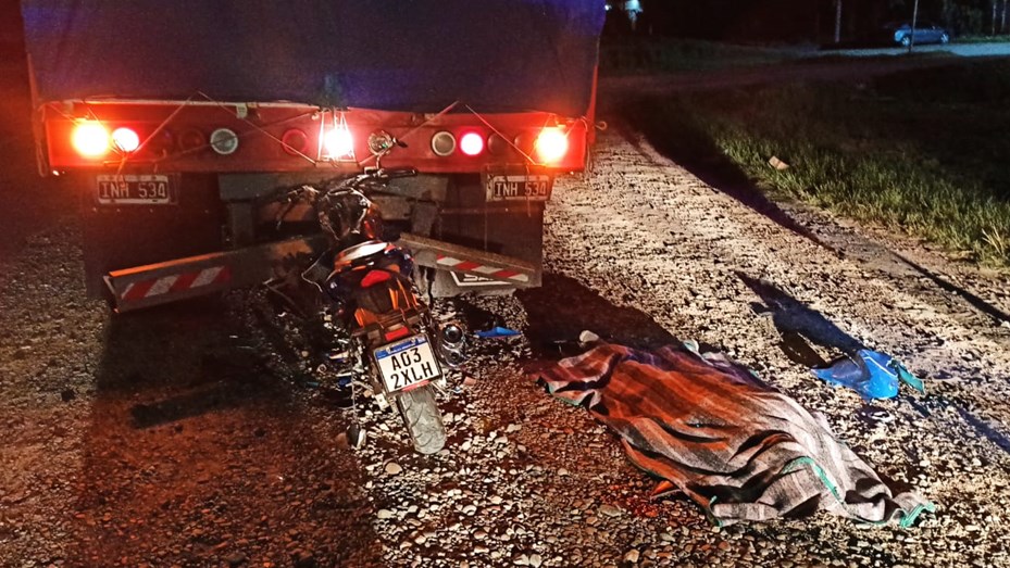 En ese momento, el camión estaba estacionado desocupado sobre la banquina y la moto colisionó sobre su parte trasera.