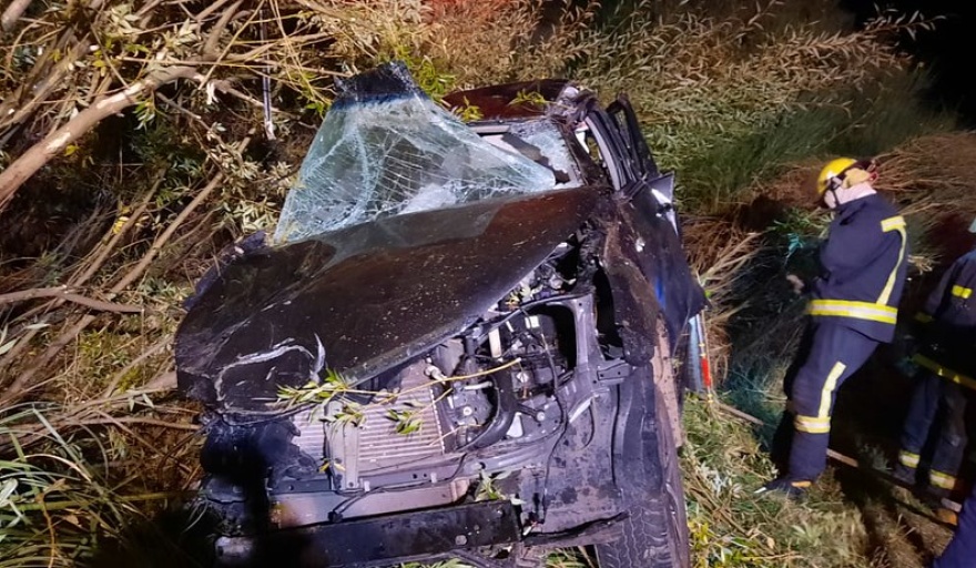 Los voceros señalaron que anoche, alrededor de las 21, tomaron conocimiento de un siniestro protagonizado por un rodado Toyota Hilux en el kilómetro 217 de la ruta 76, a unos 500 metros del acceso a la administración del Parque Provincial Ernesto Tornquist.